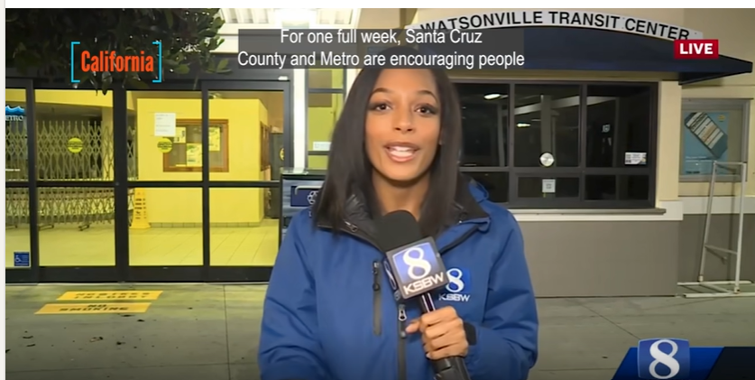 Scene from some of the many TV news stories around the country for Week Without Driving.